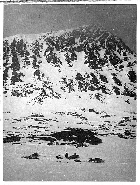 В пути. Две упряжки собак во время остановки у подножия горы