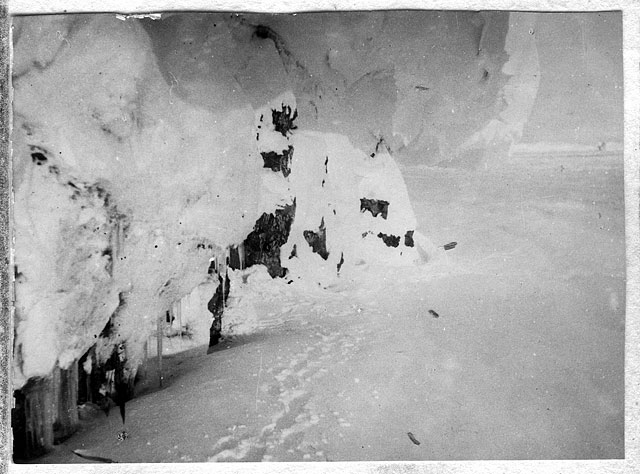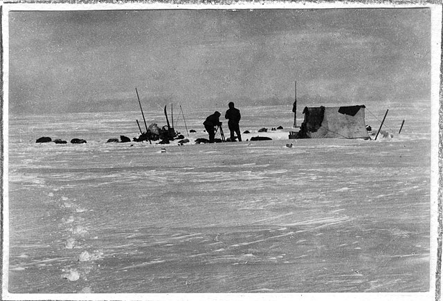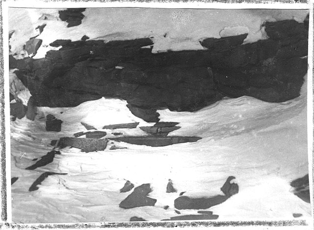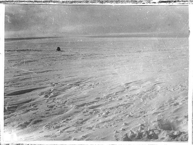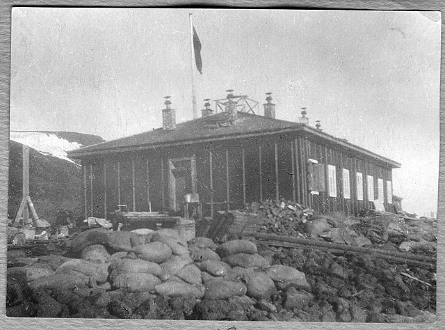 Это не "Продовольственный склад", а Ziegler Camp - база американских экспедиций И.Болдуина (1901-1902) и Э.Фиала (1903-1905) на о.Элджер, на той же ЗФИ. Единственное известное мне фото сооружения, сделанное в начале 1930х, когда оно еще не развалилось.