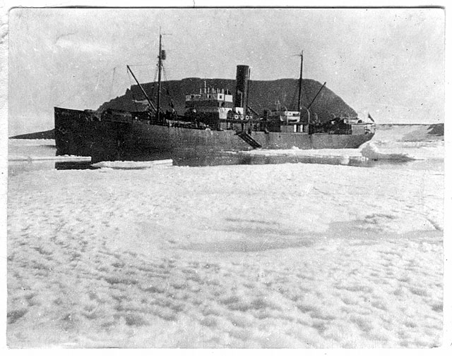 На фото под заголовком "Ледокольное судно" запечатлен л/к "Седов" Стоит на фоне скалы Рубини в б.Тихая (ЗФИ). Снимок 1930 г., когда пароход ходил в морскую экспедицию ВАИ. Заодно сменил состав зимовщиков в б.Тихая и отвез Г.А.Ушакова с товарищами на Северную Землю.