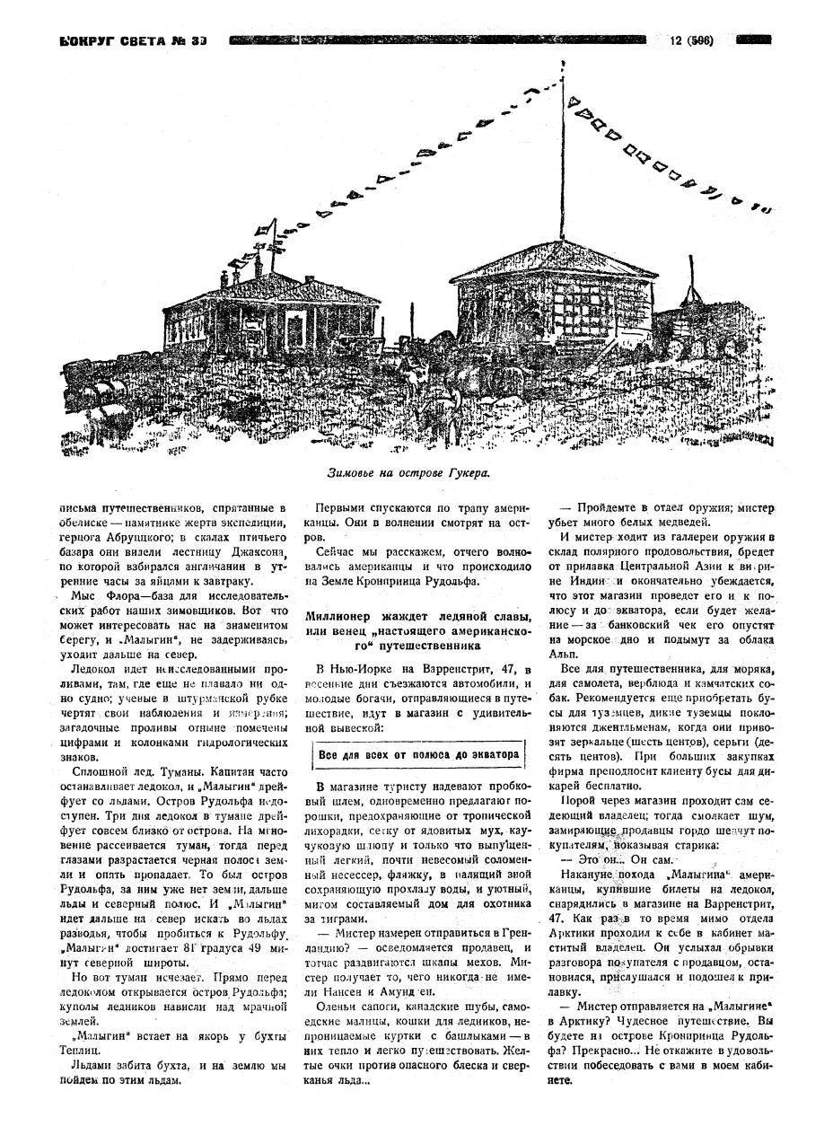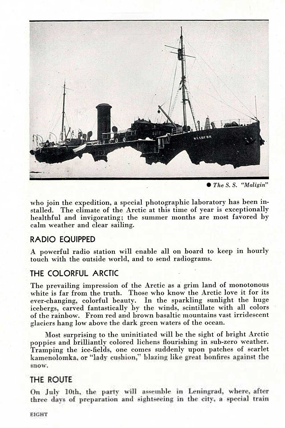 — Советский Союз ведет самую грандиозную в мире работу по изучению Арктики. С частью этой работы имели возможность ознакомиться иностранные туристы, путешествовавшие на борту "Малыгина".