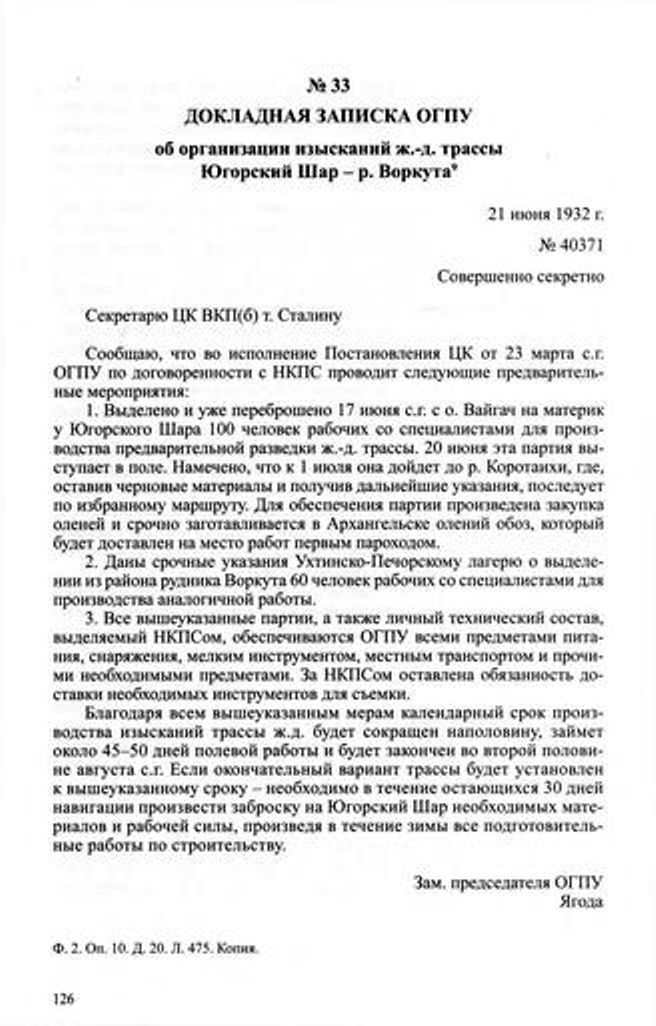 Докладная записка ОГПУ об организации изысканий ж.-д.
