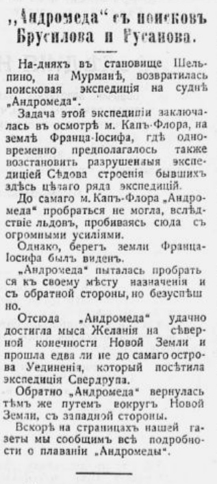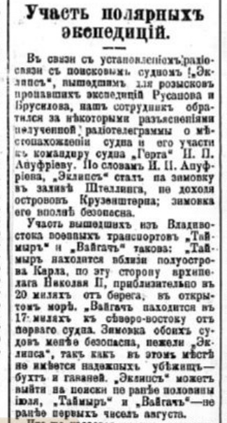 1914—1915 годы. Экспедиции В. А.Русанова и Г. Л. Брусилова разыски-