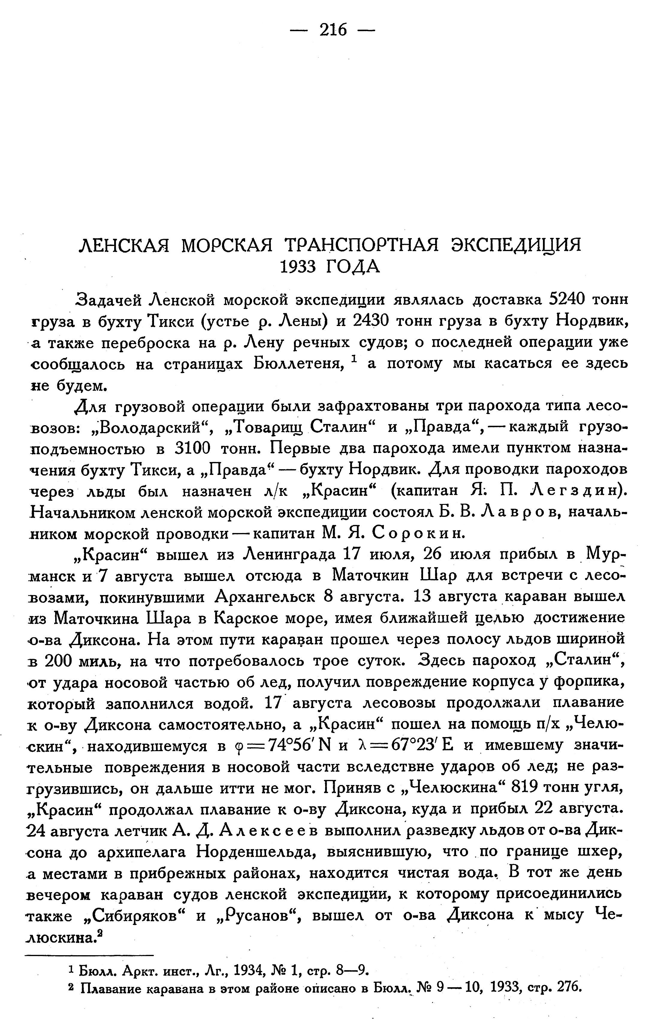 Бюллетень Арктического института СССР. № 5.-Л., 1934, с.216-218