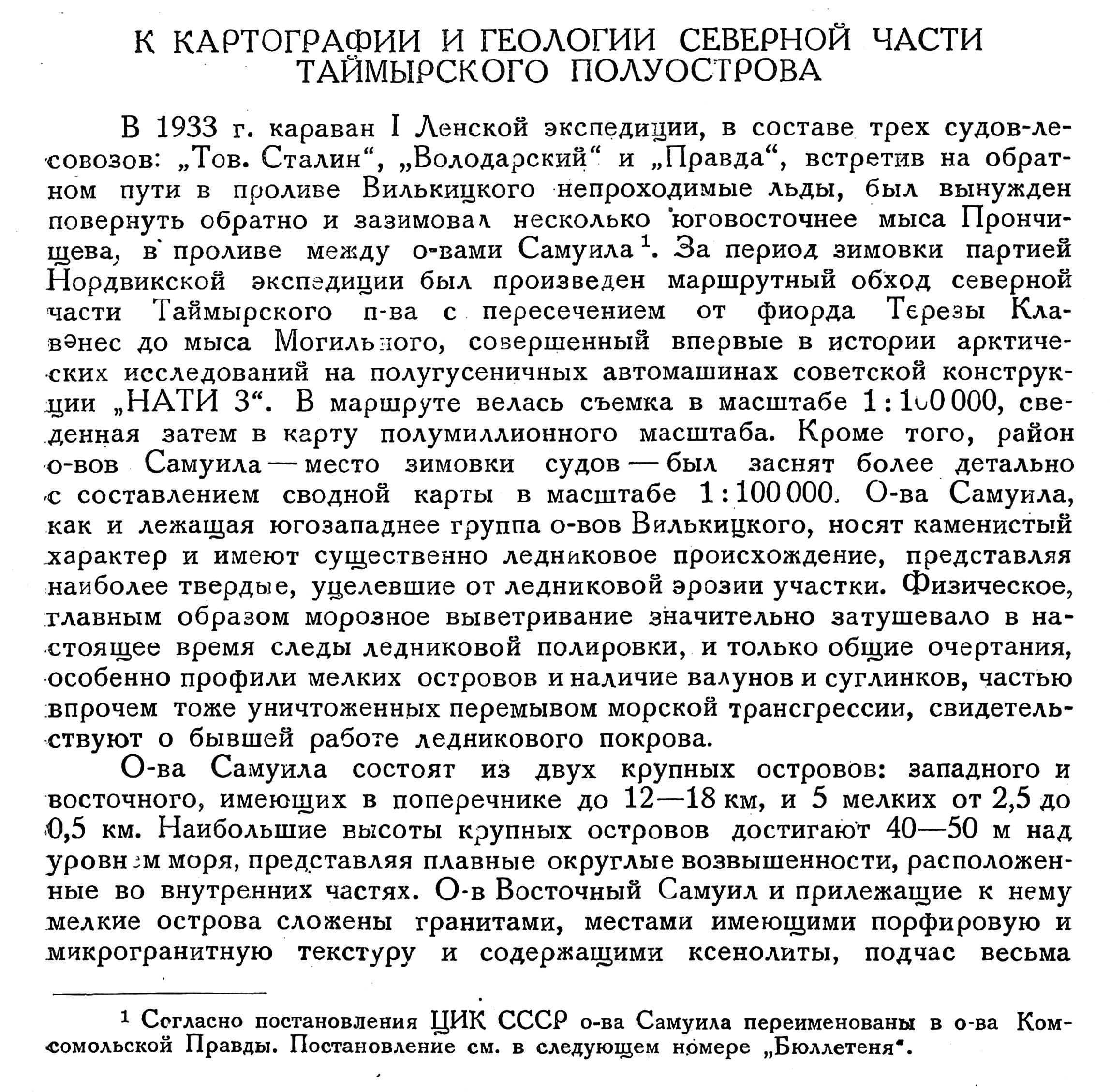 {1} Согласно постановления ЦИК СССР о-ва Самуила переименованы в о-ва Комсомольской Правды. Постановление см. в следующем номере „Бюллетеня".