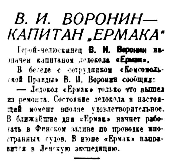 Отпущенные «Ермаком» пароходы сквозного рейса не побоялись войти в относительно тяжелые льды в районе Медвежьих островов. У побережья Чукотки они продолжали свой путь без ледокола до встречи с «Красиным» у мыса Биллингса Ледокол «Ермак» остался в районе пролива Вилькицкого и 16 сентября завершил проводку судов. В этот же день проливом прошел п/х «Рабочий», возвращавшийся с Колымы на о. Диксон. Затем «Ермак» выполнил разведочный поход вдоль восточных берегов Северной Земли, дойдя до мыса Лаврова (78°56' с. ш.). Ледокол вышел из Карского моря 27 сентября через Маточкин Шар.