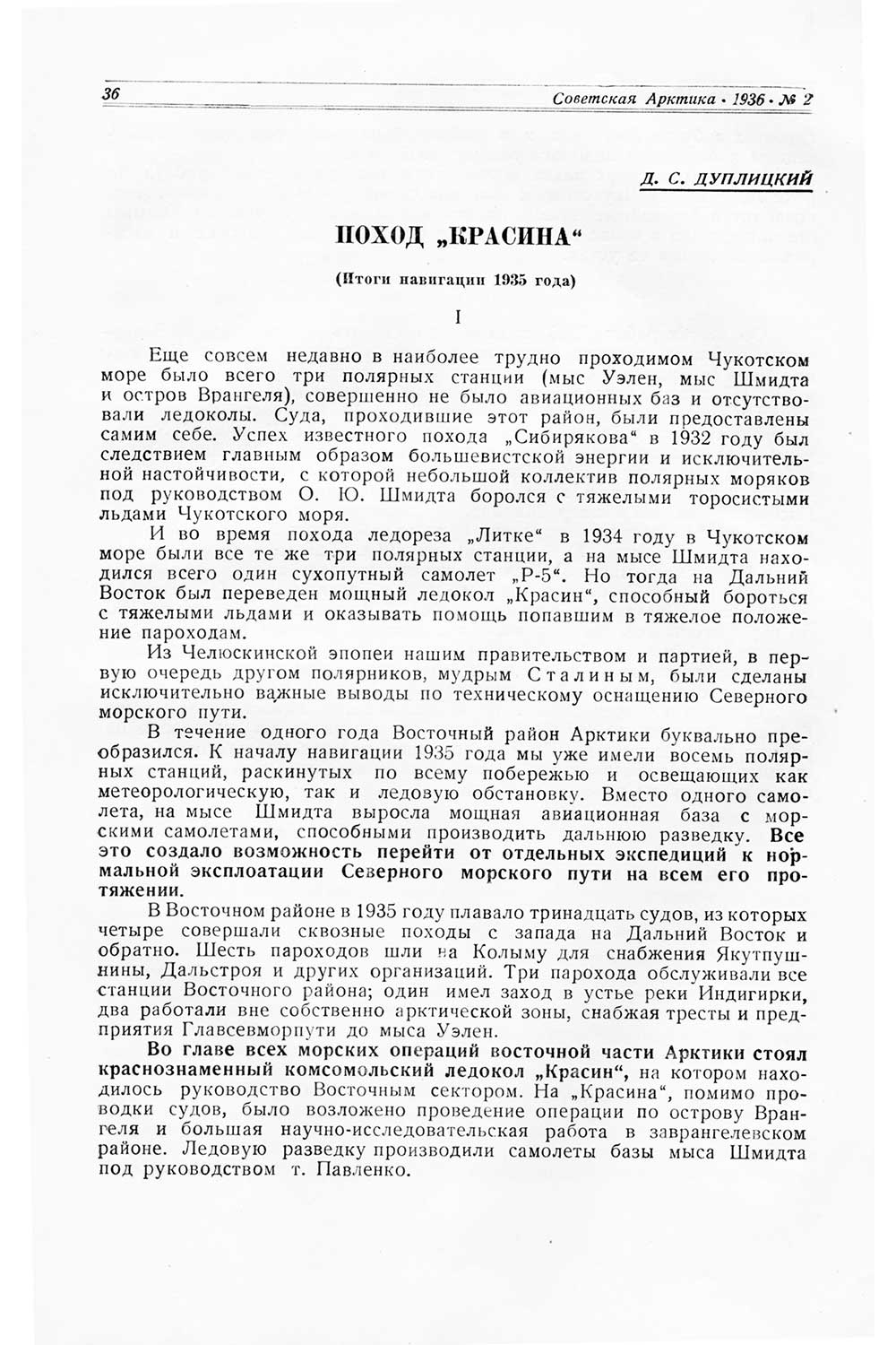 ЭКСПЕДИЦИЯ НА ЛЕДОКОЛЕ "КРАСИН" В 1935 ГОДУ