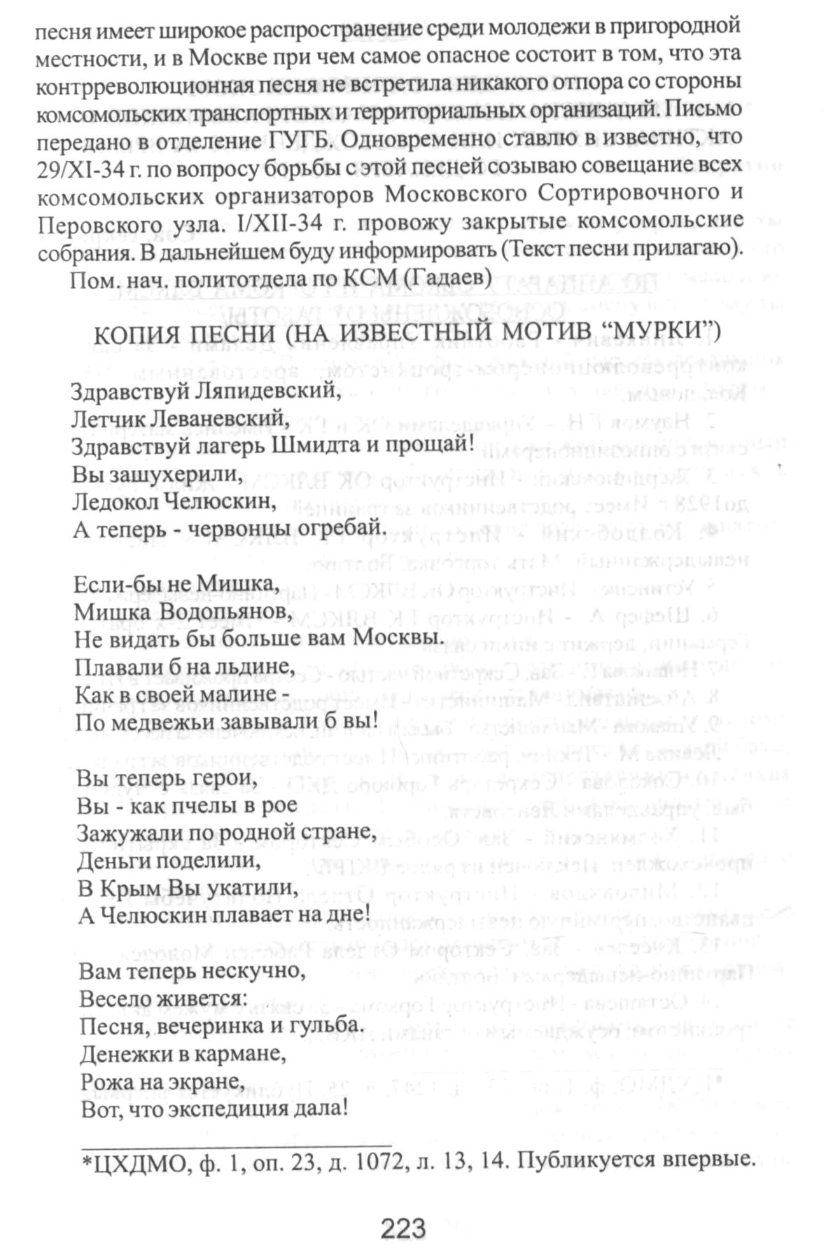 страны - Челюскинской эпопеи. Текст песни найден у ученика этой