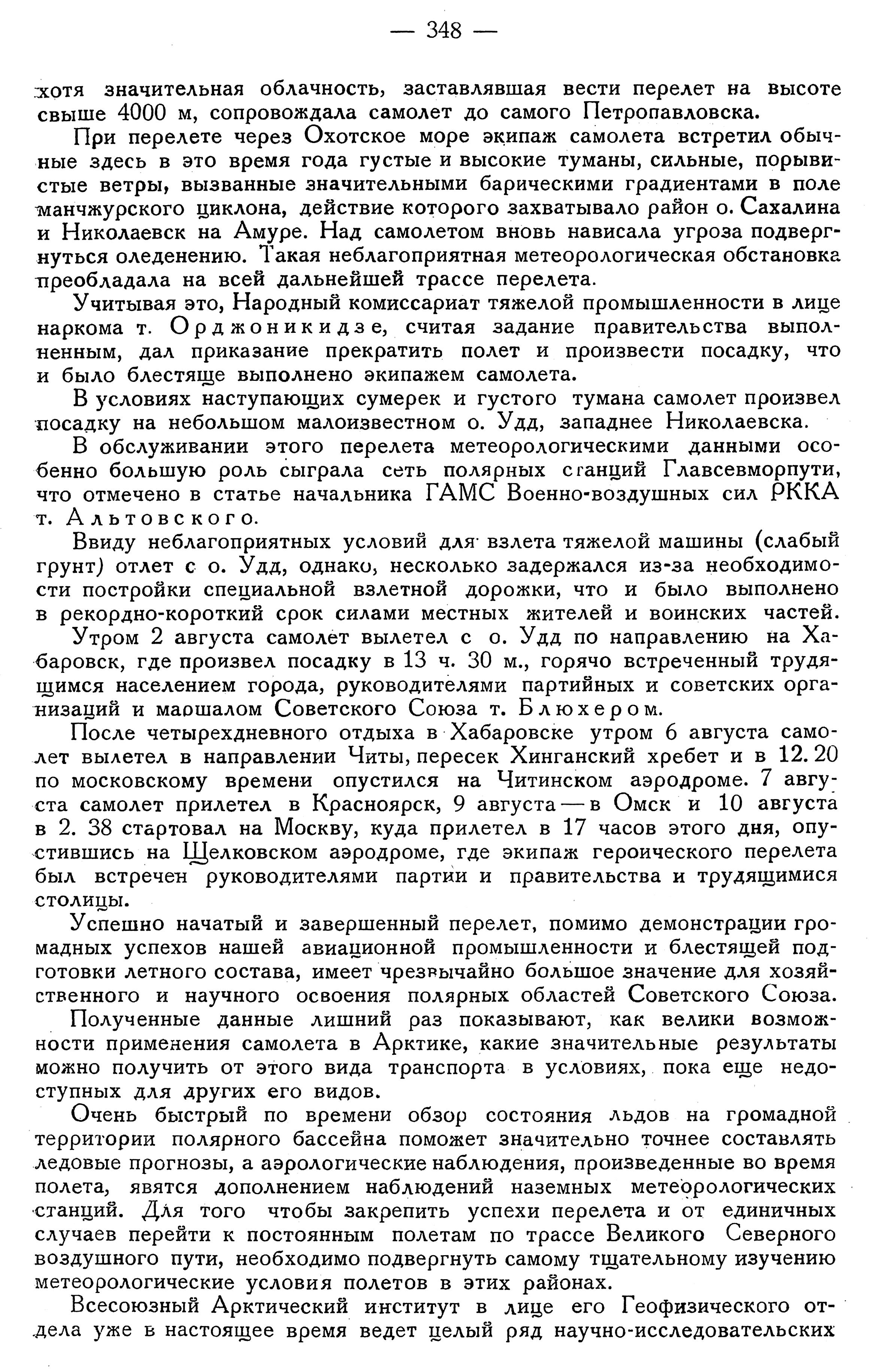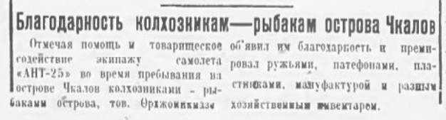В обслуживании этого перелета метеорологическими данными особенно большую роль сыграла сеть полярных станций Главсевморпути, что отмечено в статье начальника ГАМС Военно-воздушных сил РККА т.