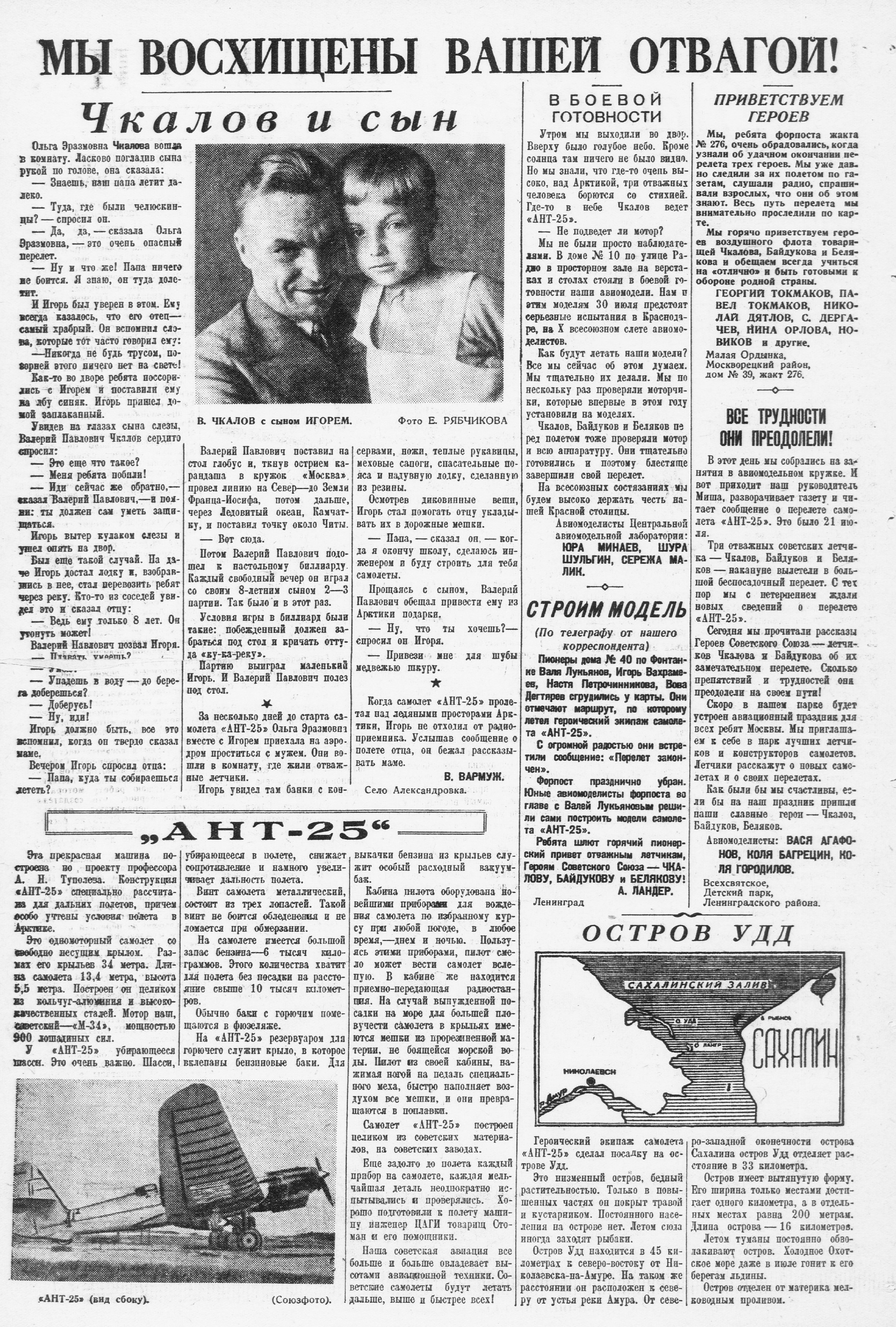 Успешно начатый и завершенный перелет, помимо демонстрации громадных успехов нашей авиационной промышленности и блестящей подготовки летного состава, имеет чрезвычайно большое значение для хозяйственного и научного освоения полярных областей Советского Союза.