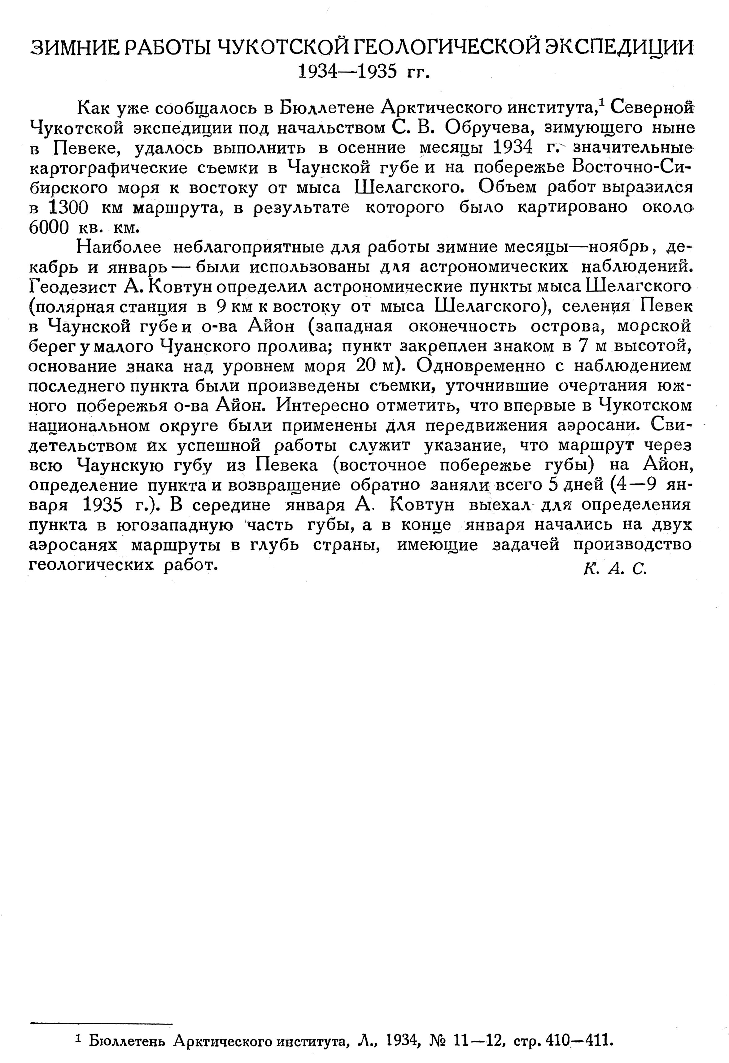 ИССЛЕДОВАНИЕ ЧАУНСКОГО РАЙОНА ЧУКОТСКОГО ОКРУГА В 1934—1935 ГГ.