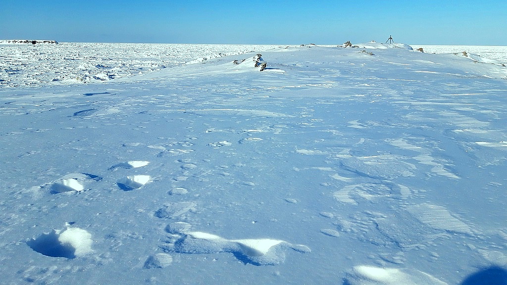 Попутно моим следам к краю мыса идут следы белого медведя.
