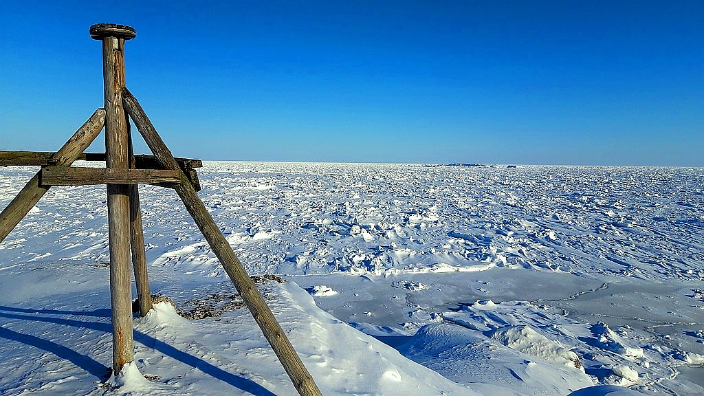 Обошел окрестности закрытые снегом и осмотрел часть ветхого балка близ маяка.