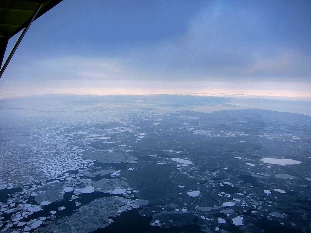 Когда Северок начал подходить к краю мыса и я увидел впереди только открытое море и мелко битый лед в черной воде, то стало немного жутковато, а рука сама потянула нос самолета вверх.