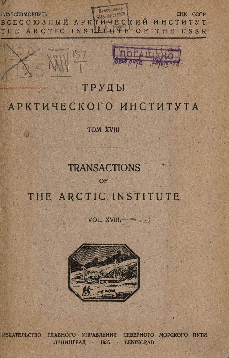Труды Арктического института Т. 18: Научные результаты Арктической экспедиции на "Ломоносове" в 1931 г. Гидрология и метеорология [Текст] = Scientific results of the Arctic expedition on the "Lomonosoff" in 1931. Hydrology and meteorology. - Ленинград : Изд-во Гл. упр. Северного морского пути, 1935. - 106 с., 1 л. карт. : ил.