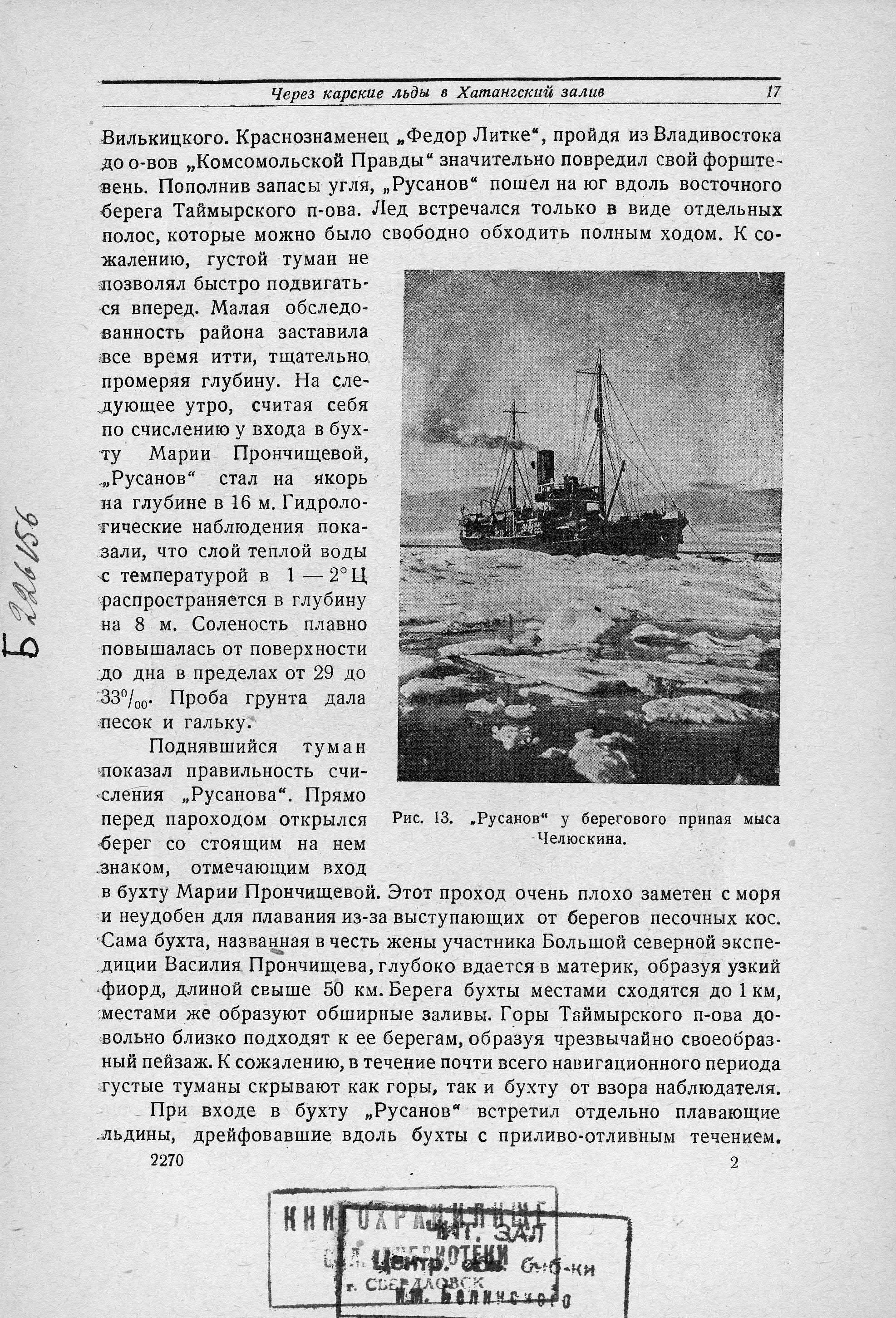 БОРТ "РУСАНОВА", 17 (от нашего спецкора. ). Идя по курсу на Диксон, получили задание оказать помощь аварийному "Малыгину" и по организации новой полярной станции на мысе Стерлегова.