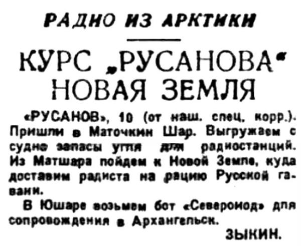 Правда Севера, 1934, №239_16-10-1934 Русанов возвращается.jpg