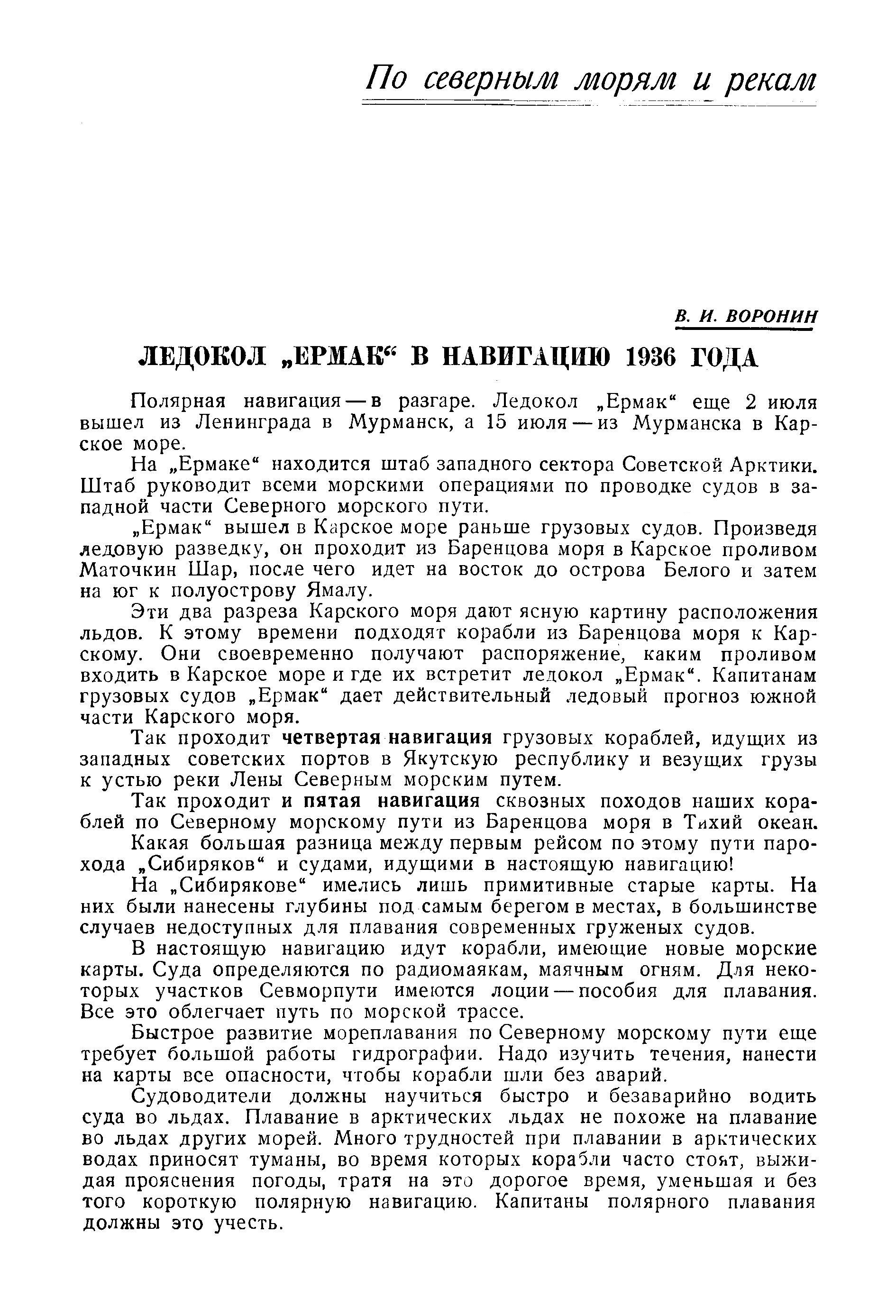 Спец. корр. «Правды»). Ледоколы «Ермак» и «Трувор», вышедшие для проводки в Ленинград первых в текущую навигацию пароходов «Магнитогорск» и «Виноградов», идущих из-за границы, встретили их сегодня в 13 часов в районе острова Гогланда.