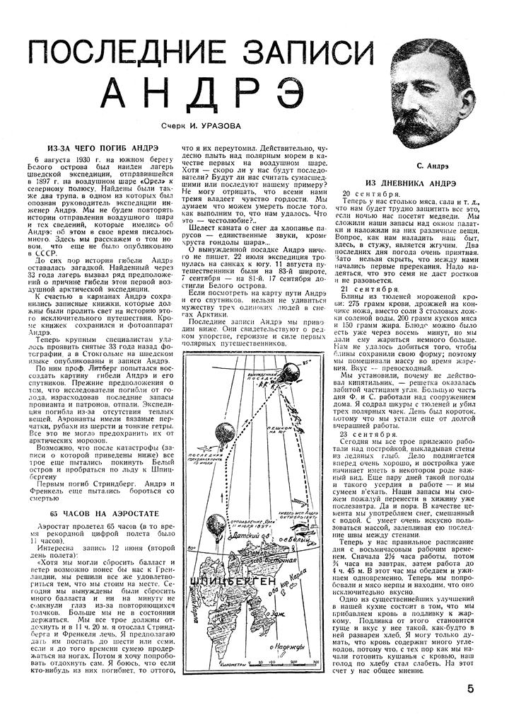 С именем Андре и его экспедицией связан факт, который за давностью лет начисто забыт читателями России и который, как я выяснил, совершенно неизвестен скандинавам. Когда я рассказал о нем приехавшему в Москву в 1965 г. моему шведскому другу, известному ученому-этнографу Б. Даниельссону, тот воскликнул: "Обязательно напиши об этой истории. На Западе о ней никто не слышал".
