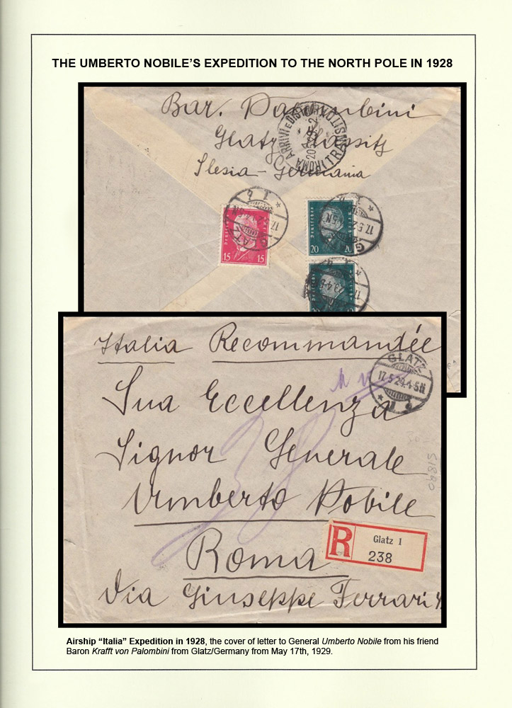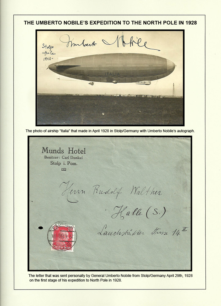 1) письмо, отправленное лично У.Нобиле из Штольпа/тогда Германия (Stolp) 29.04.1929 во время промежуточной посадки для ремонта;