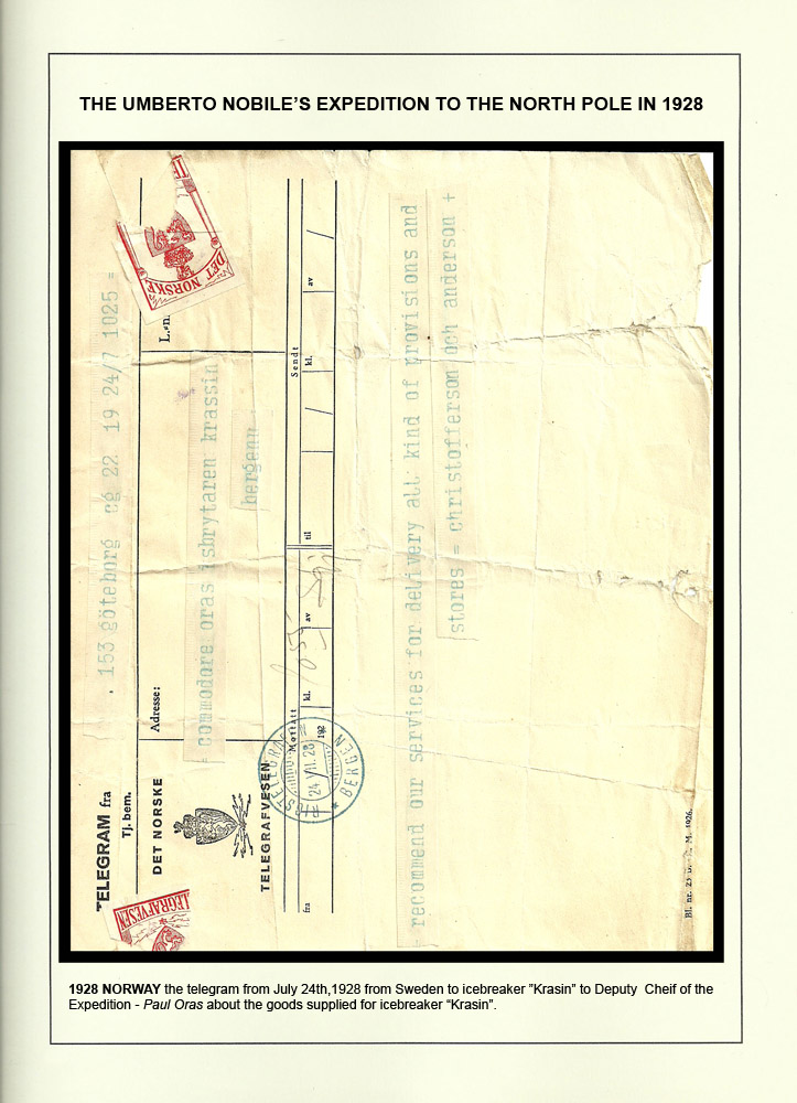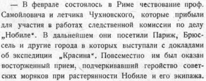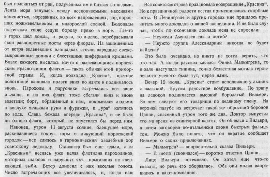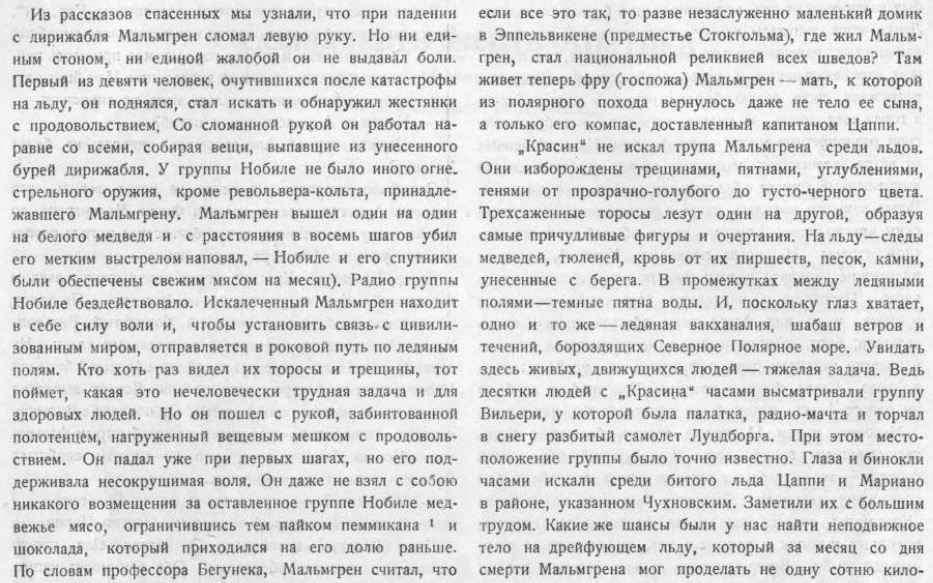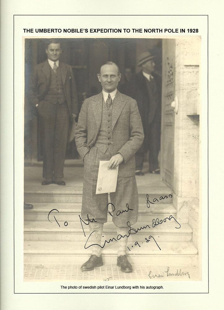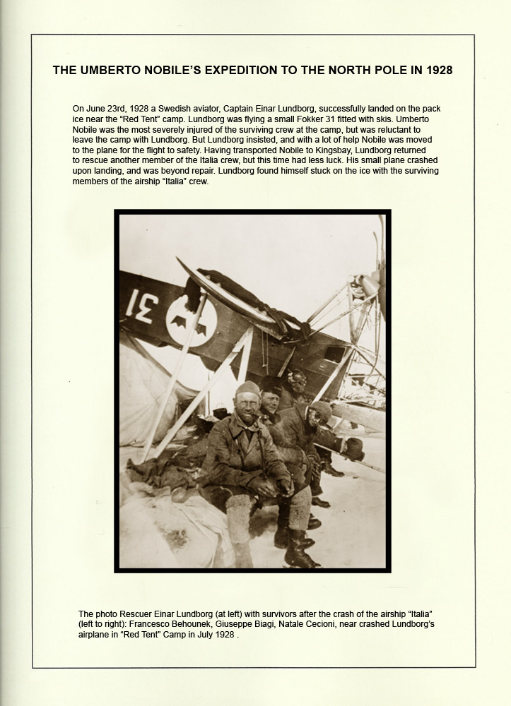 5) 3 странички, посвященные шведскому пилоту капитану Эйнару Лундборгу (Einar Lundborg) и его Фоккеру 31, вывезшему Умберто Нобиле из лагеря, а затем, после второй неудачной посадки, присоединившемуся к оставшимся членам экипажа "Италии";
