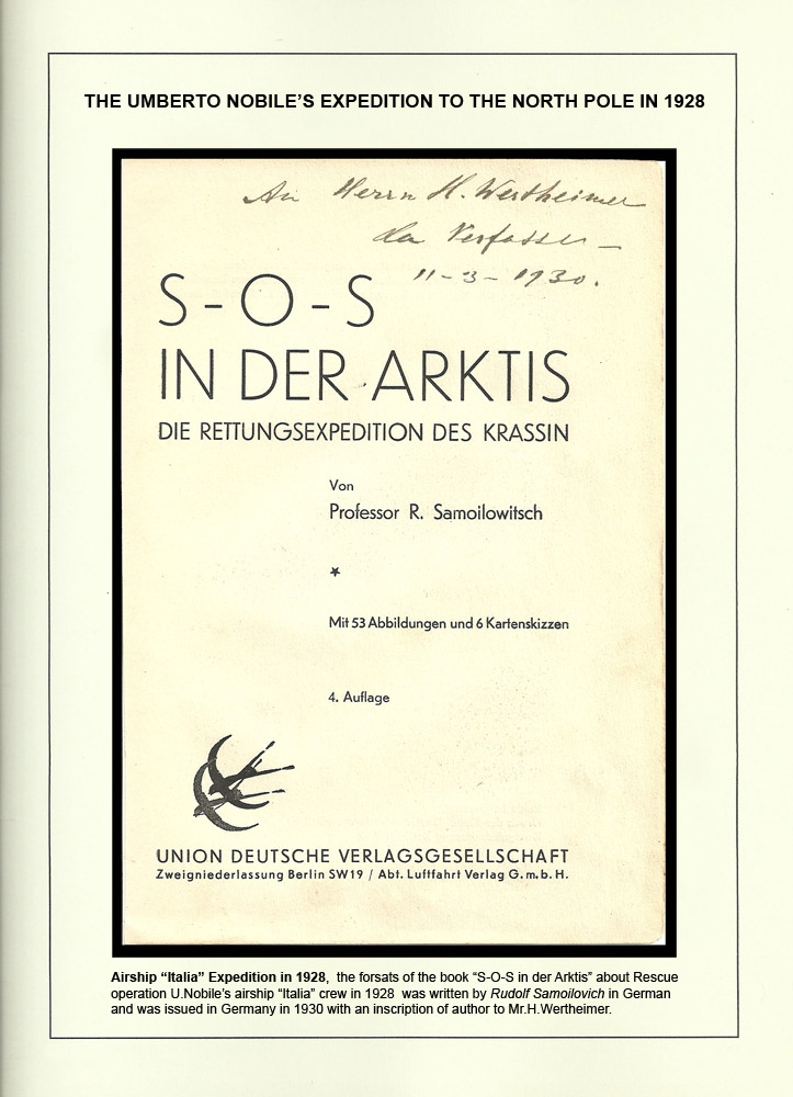 10) Форзац книги Р.Самойловича на немецком языке "S-O-S in der Arktis" об экспедиции ледокола "Красин" по спасению экипажа дирижабля "Италия" в 1928 г., с дарственной надписью от автора.