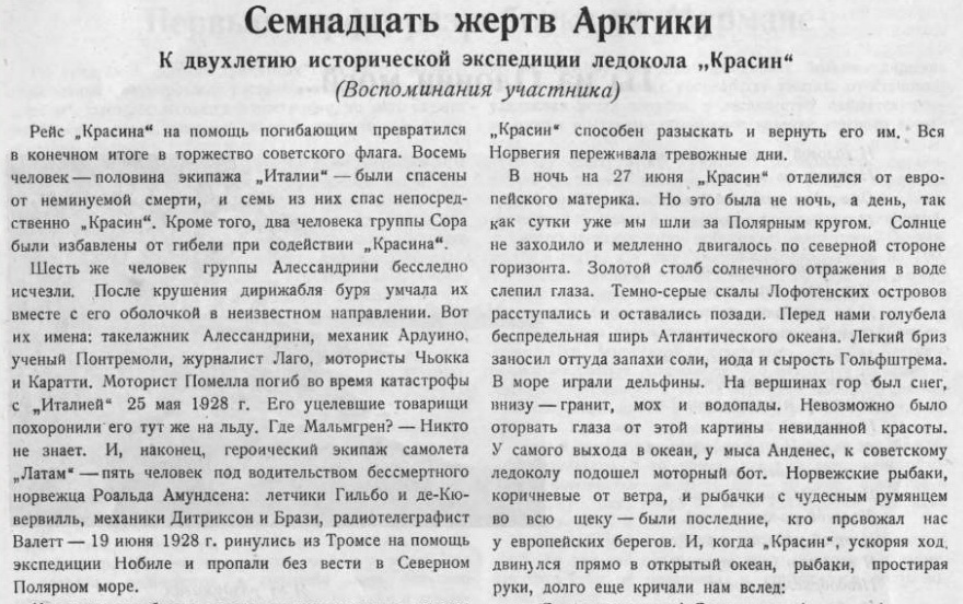 8/ 2 странички, посвященные ледоколу "Красин", спасшему оставшихся членов экипажа "Италии" 12.07.1928;
