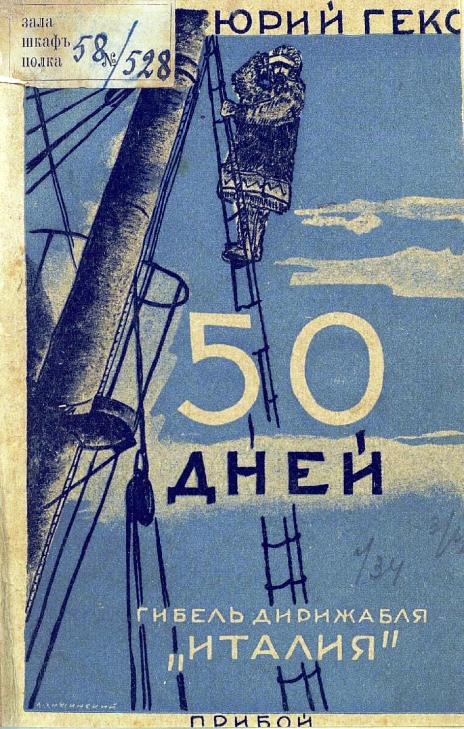 Геко Ю., "50 дней. Гибель дирижабля "Италия" / Издательская обложка работы Хижинского. Л. Прибой. 1928г. 278 с., с илл.