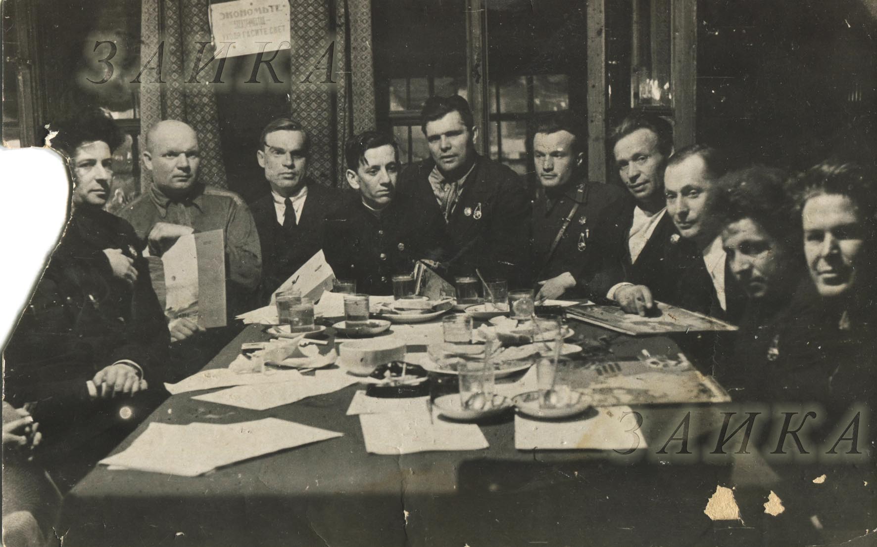 Редакция "Правды", слева-напрво за вырезанными "врагами народа" сидят - главред Мехлис(у него БКЗ за Гражданскую), Доронин, Леваневский, неизвестный, Водопьянов, Каманин, Молоков, Слепнёв, Ляпидевский, неизвестный.