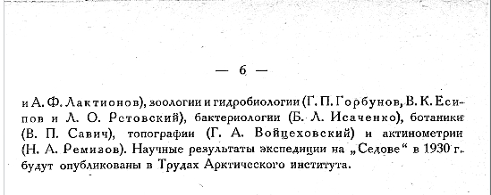 Научные результаты экспедиции на „Седове" в 1930 г- будут опубликованы в Трудах Арктического института