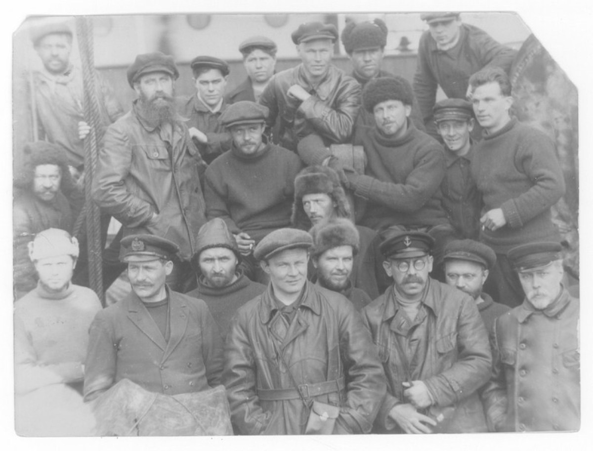Группа участников научной экспедиции на советском ледокольном пароходе "Георгий Седов" 1930 г.