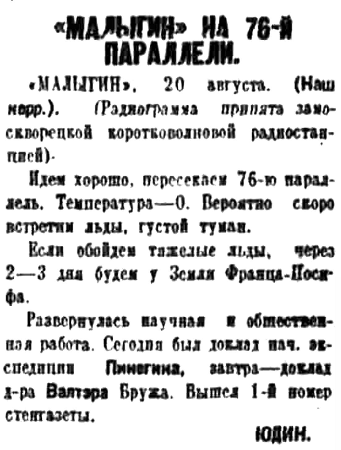 Арктический поход "Малыгина" вызвал за границей огромный интерес. Среди желающих принять участие в походе — знаменитый исследователь Арктики Фредерик Джексон — 72 лет, который еще в 1894 г. был руководителем экспедиции на Землю Франца-Иосифа.