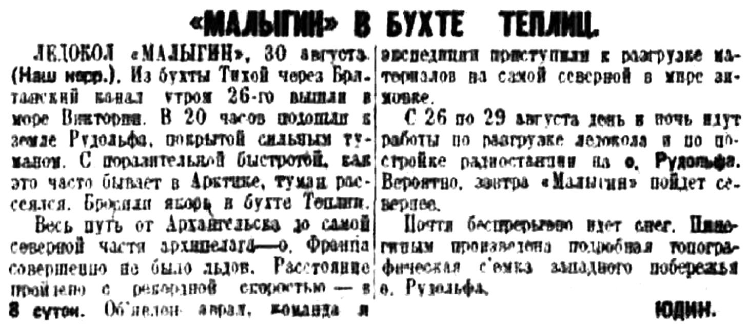 ПОХОД «МАЛЫГИНА» В АРКТИКУ.