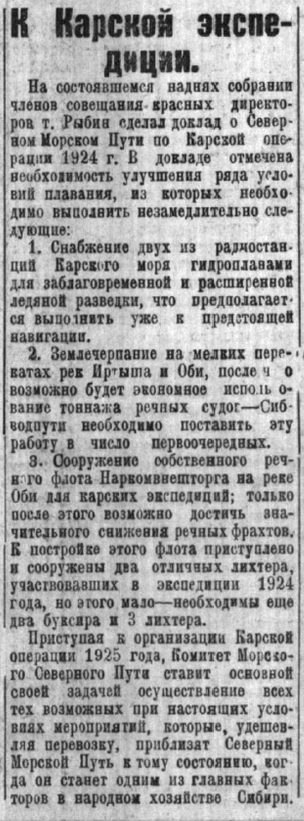 Советская Сибирь, 1925, № 037 (1925-02-14) Рыбин. К Карской эксп-ии.jpg