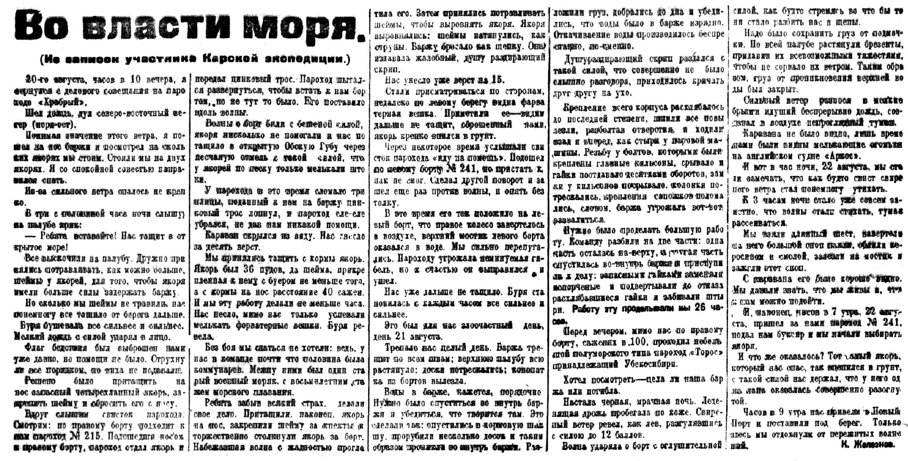 (Из записок участника Карской экспедиции.)