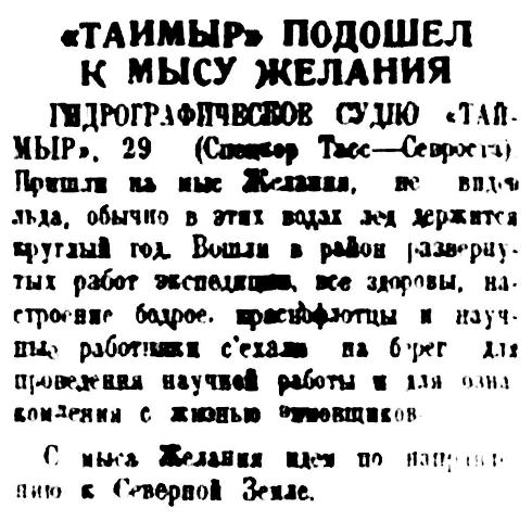Таймырская Гидрографическая Экспедиция. 13 октября в г. Архангельск возвратилась Таймырская Гидрографическая Экспедиция Гидрографического Управления, работавшая в навигацию текущего года в Карском море на г/с. «Таймыр».