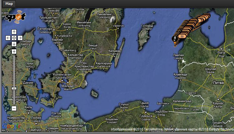 Карта местонахождения яхты «Пётр I» в реальном времени (период обновления координат 10 минут)