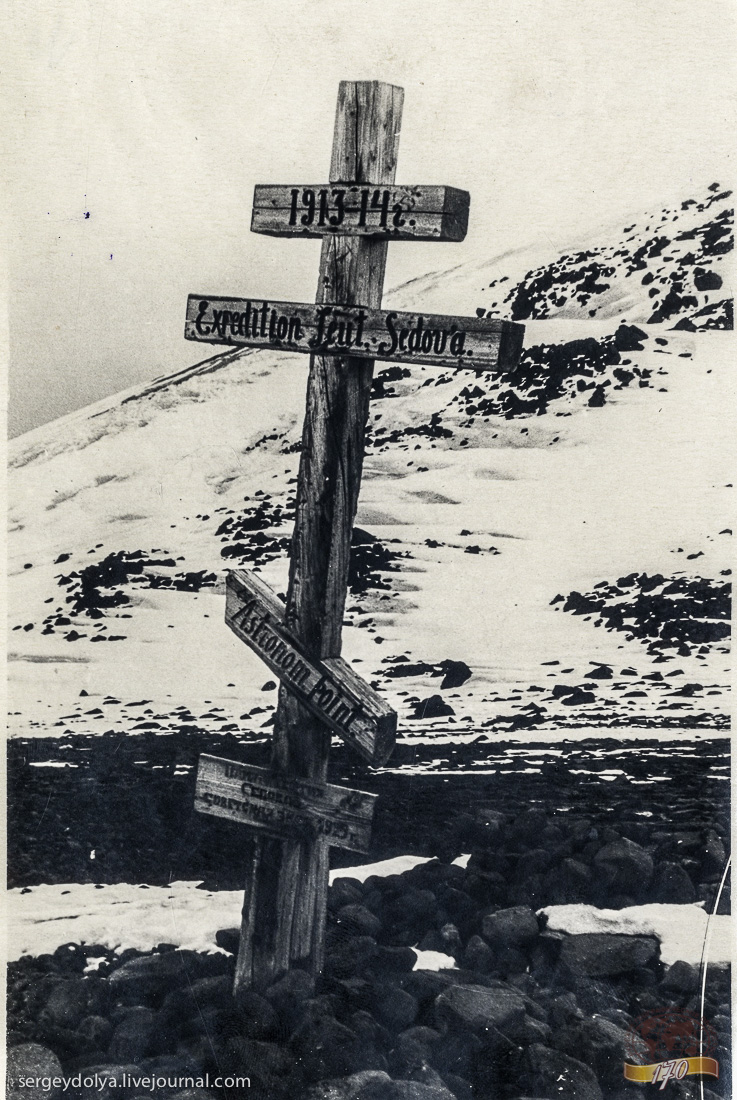 Сегодня в селении Elmwood на Сара Flora поставлен нами крест с надписью: «Expedition Zeute-nanlioc Sedov’oc 1913 г.». Заканчиваем приемку угля и дров и завтра утром спущусь несколько восточнее, чтобы принять на борт убитых моржей, оставленных на льдине.