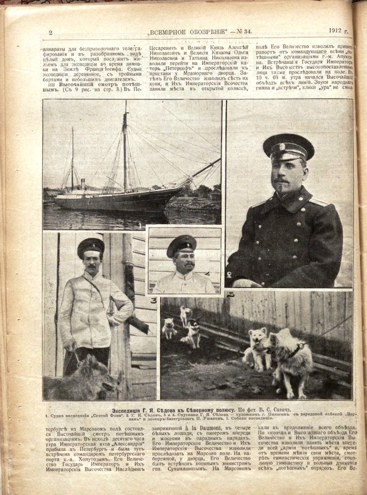 Бумага оставленная на Сара Flora в селении Elmwood: 1913 г. 4/17 сентября. Пробыв здесь пять дней в течение которых мы взяли в посёлок Elmwood около 200 пудов угля и часть дров, а также убили в окрестностях необходимое количество, как корм для собак и ворвань для стойла моржей. Сего числа отправились дальне на север по пути к Земле Kronprinza Rudolfa. Остановимся на зимовку в зависимости от льдов и свирепствующих ныне бурь где-нибудь на этом пути по Британскому каналу или же в восточной части Архипелага, возможно что и на самой Земле Kronprinza Rudolfa, оттуда партия пойдет к полюсу. Пришедшее русское судно прошу доставить нам уголь к месту нашей зимовки, оставив на Сара Flora лишь 1000 его … от посёлка, приблизительно в том месте где лежит зеленая … поближе к берегу, чтобы его было возможно удобнее принят на борт карбаса. В случае каких-либо тяжелых обстоятельств не позволит нам дойти до места нашей зимовки, то весь уголь и другие запасы, ели бы они были присланы, а также всю корреспонденцию оставить здесь на Сара Flora. Возможно, что экспедиция в течение зимы пришлет сюда дополнительную записку о том, где она остановилась зимовать и где ее, таким образом, нужно будет искать.