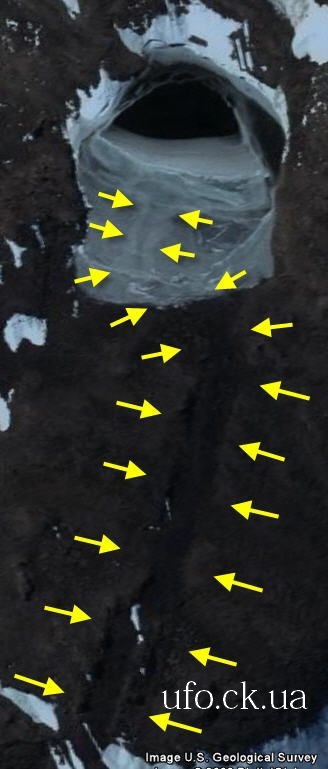 Недавно в Антарктиде были замечены странные формирования неизвестного происхождения. В сущности, речь идет об отверстиях, предположительно, ведущих к пещерам или подземным камерам. Координаты двух формирований: 66 33' 11.58" южной широты, 99 50' 17.86"восточной долготы и 66 36' 12.58" южной широты, 99 43' 12.72" восточной долготы.