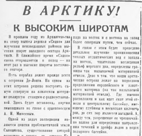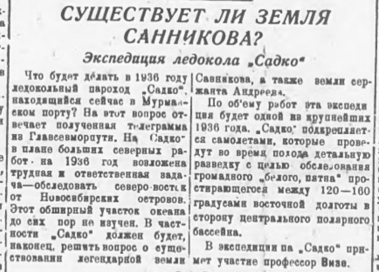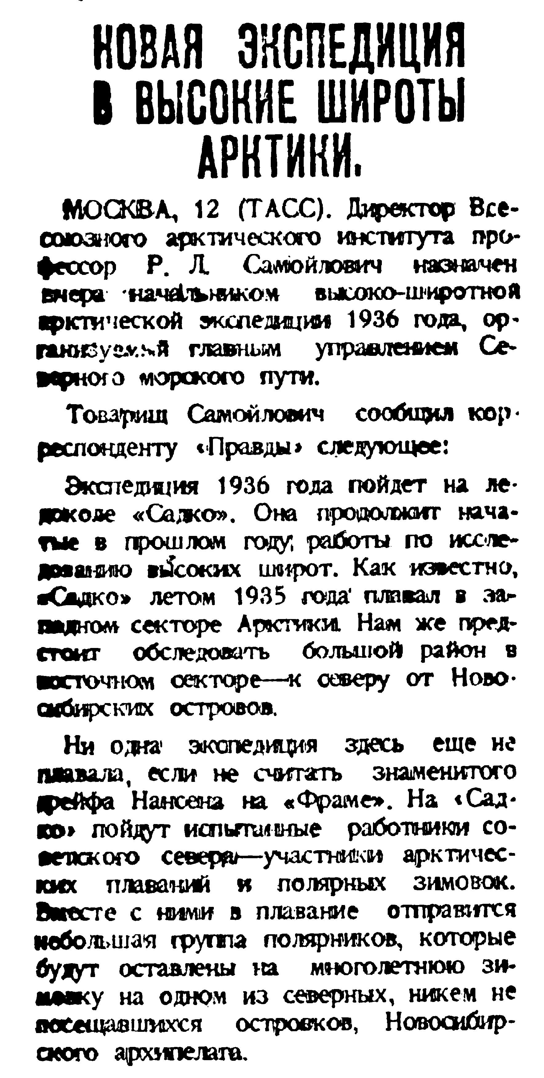 В "Советской Арктике" №8, 1936 г. есть статья Самойловича о планах 2-й высокоширотной экспедиции на "Садко"