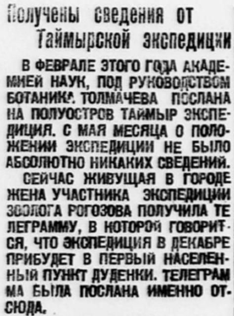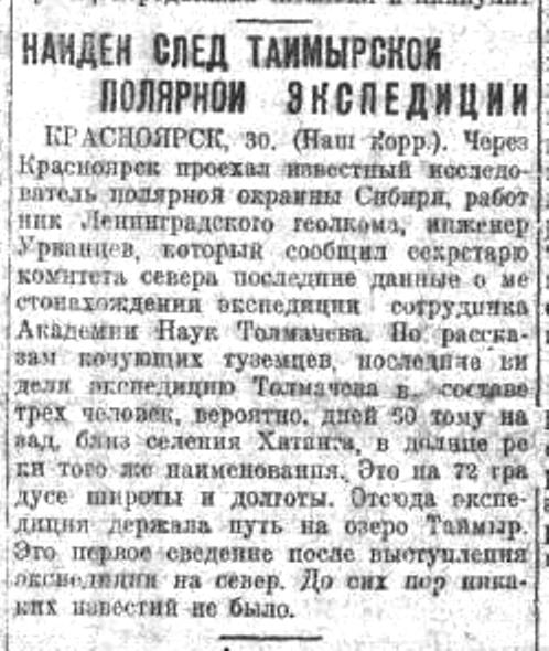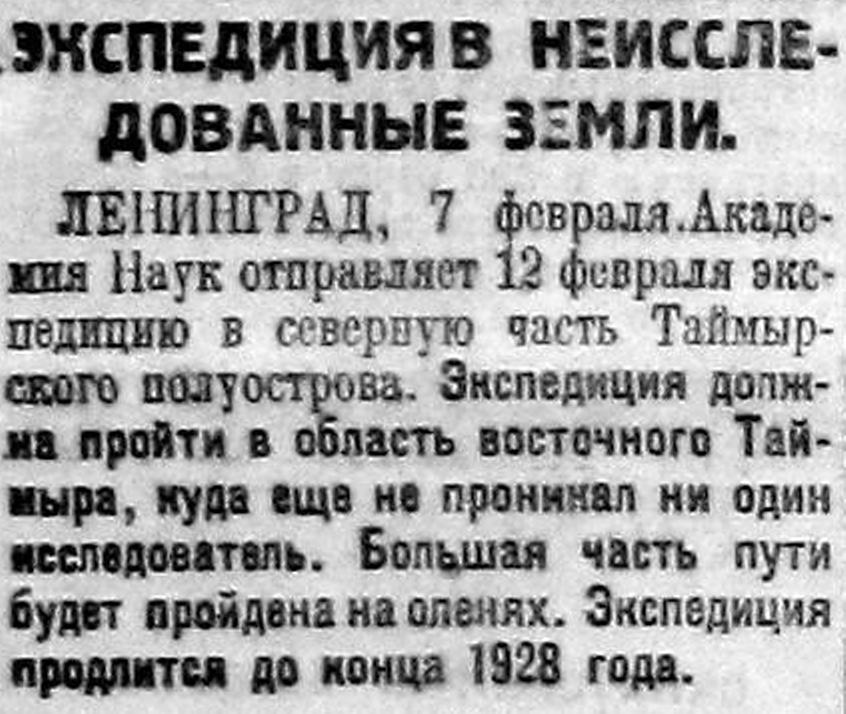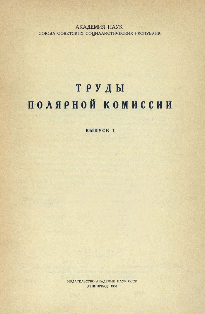 Гыданской (1927) и Таймырской (1928), — материалы которых в настоящее время находятся в обработке и будут публиковаться по мере ее окончания. Часть их составит и основу ближайших выпусков Трудов комиссии. Наряду с этими материалами, комиссия имеет в виду опубликование в своих Трудах и результатов других исследовательских работ в Арктике, ведшихся как академическими экспедициями, так и отдельными специалистами по поручению Академии.