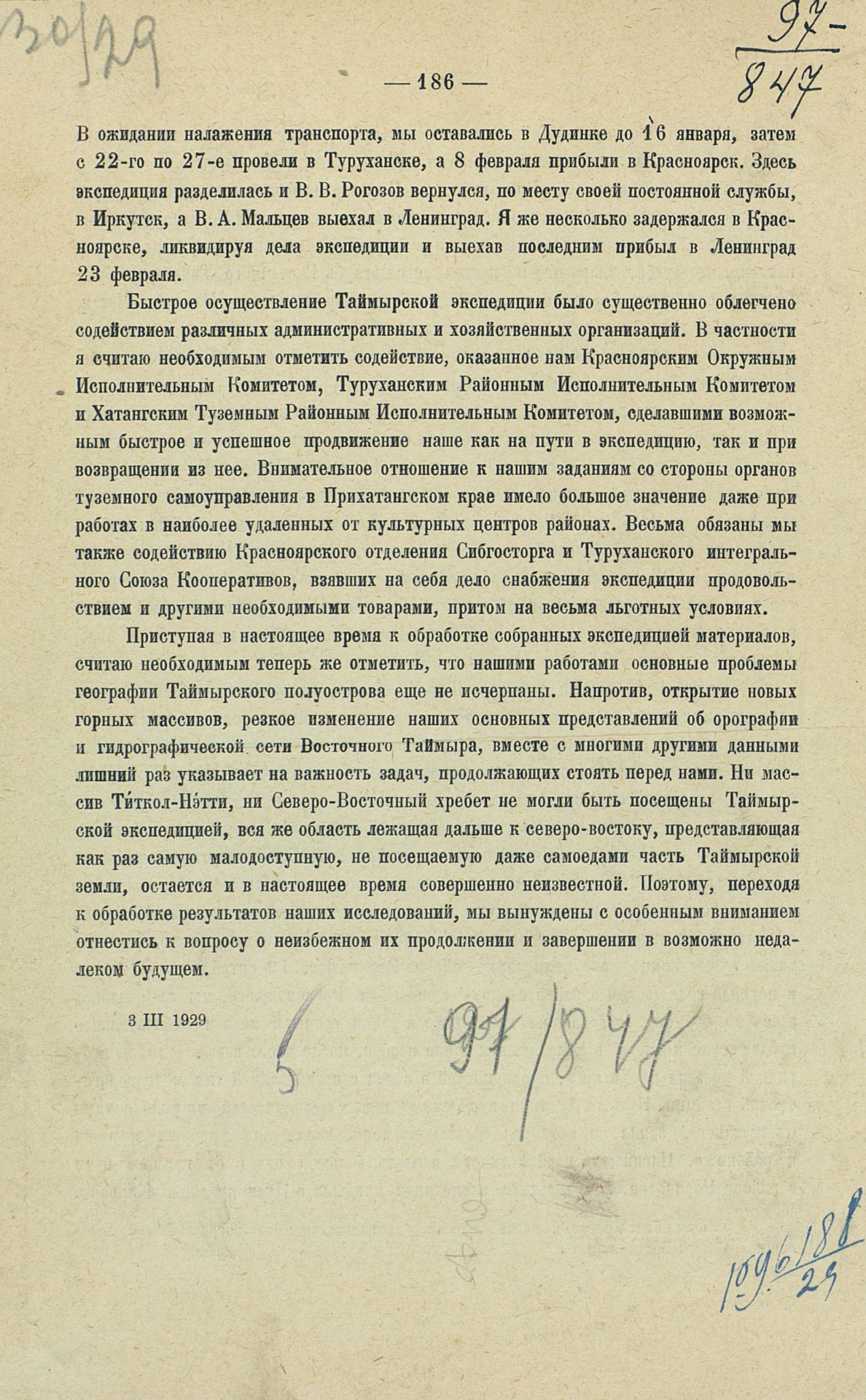 ПРЕДВАРИТЕЛЬНЫЙ ОТЧЕТ О РАБОТАХ ТАЙМЫРСКОЙ ЭКСПЕДИЦИИ АКАДЕМИИ НАУК СССР в 1928 г.