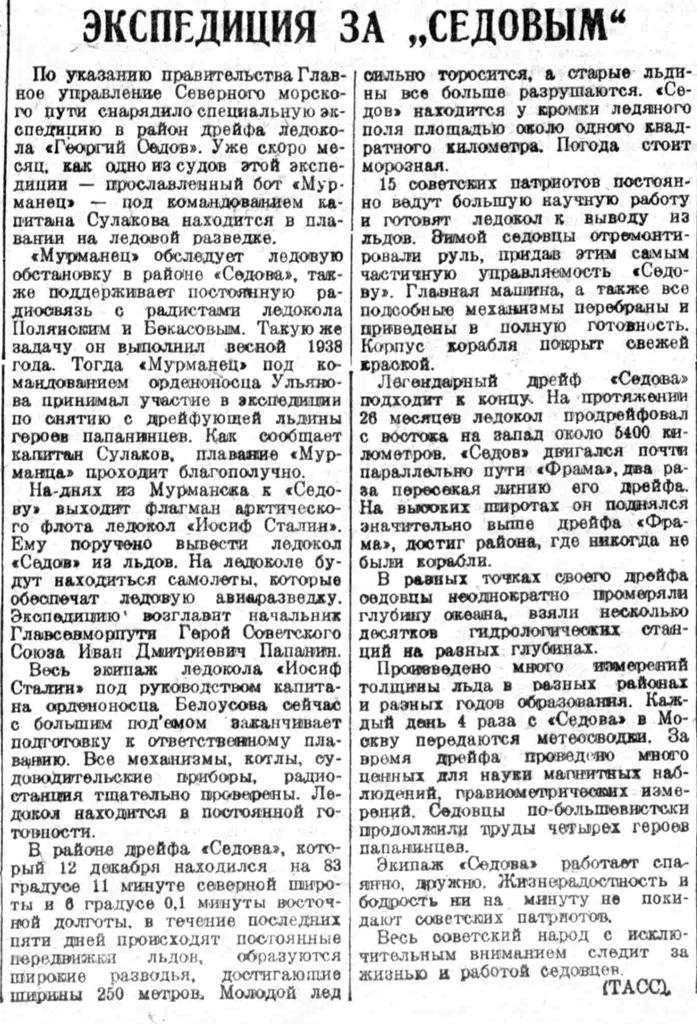ВСП 1939 № 283 (14 дек.) Дрейф Седов. Папанин выехал в Мурманск.jpg