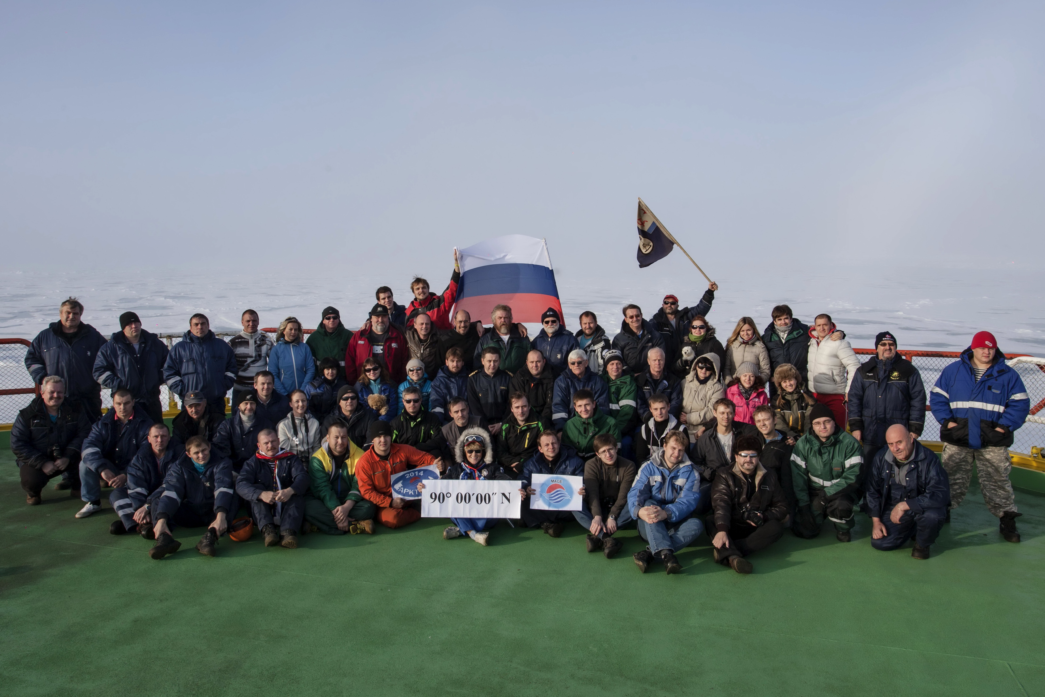 15 августа со стрельбой прошли через Северный полюс. Это было 48-е достижение полюса «Ямалом», 4-е – «Федоровым» и 13-е – мною. Полюс прошли ходом, без остановки, с ритуальной фотосъемкой дружного коллектива на вертолетной площадке и поеданием арбуза в моей каюте :) . На следующий день остановились, «особо выдающиеся» члены экспедиции были спущены на лед для официальной съемки с флагом. Впервые в истории сейсмические работы были выполнены на полюсе. Кстати в это же время канадцы на двух ледоколах работали в этом же районе («Луи Сен Лоран» и «Терри Фокс») с теми же задачами. Но на полюсе они были после нас только через 12 суток.