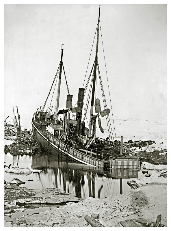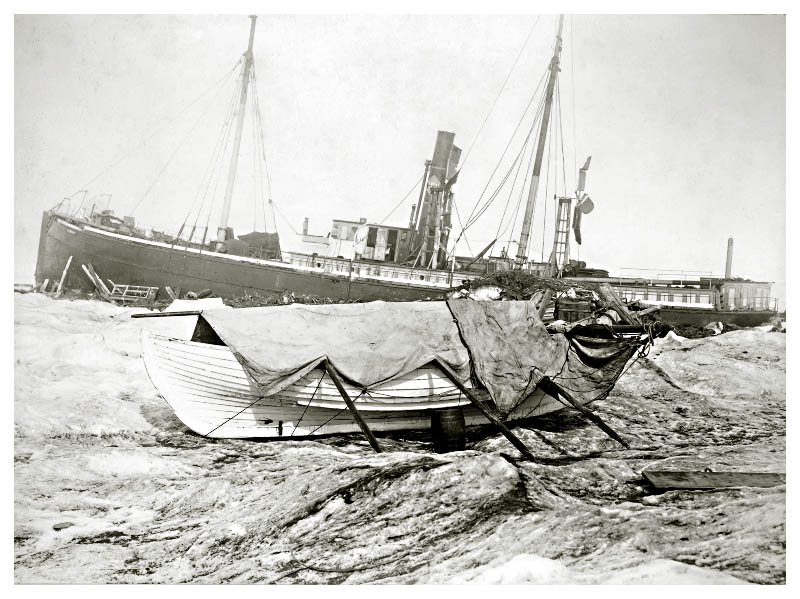 Когда всякие надежды на освобождение «Варны» рухнули, начальник экспедиции распорядился сложить в шлюпки запасы продовольствия и необходимое снаряжение на случай гибели судна. Кроме того, трехмесячный запас продовольствия сложили на льду недалеко от судна. Эта мера предосторожности была не лишней, потому что уже в начале ноября начались жестокие напоры льдов. «Варна» получила течь, а попытка выкачать воду успеха не имела. В декабре течь увеличилась, и дальнейшее пребывание на судне стало невозможным. Тогда участники голландской экспедиции перебрались на стоявшую совсем недалеко «Димфну», где начальник экспедиции лейтенант Ховгард оказал потерпевшим крушение гостеприимство.