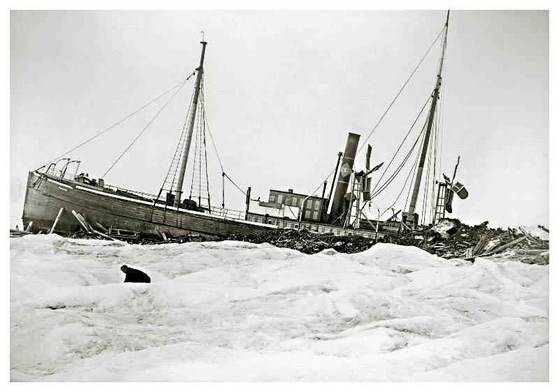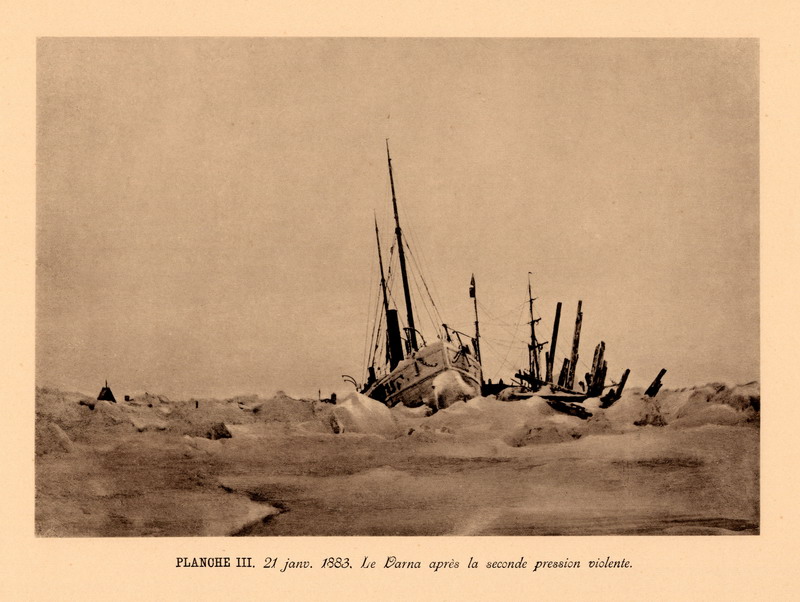 На следующий день судно уже было в Карском море. Малоутешительная картина представилась здесь путешественникам. Море было покрыто сплошными льдами, среди которых «Варна» лишь с величайшим трудом находила себе путь, большей частью вынужденная пассивно дрейфовать вместе со льдом. 17 сентября голландцы очень удивились, увидев среди льдов другое судно. Оказалось, что это пароход датской экспедиции «Димфна», так же как и «Варна», тщетно боровшийся со льдами. Суда приблизились друг к другу, и участники обеих экспедиций поделились своими невеселыми впечатлениями о Карском море. Надежды на достижение Енисейского залива были оставлены, сомнительной казалась возможность возвращения в Баренцево море. Действительно, уже через несколько дней после встречи оба судна потеряли всякую возможность самостоятельного движения. Вместе со льдами, цепко захватившими их, они были отданы во власть ветрам и морским течениям, медленно уносившим их на север.