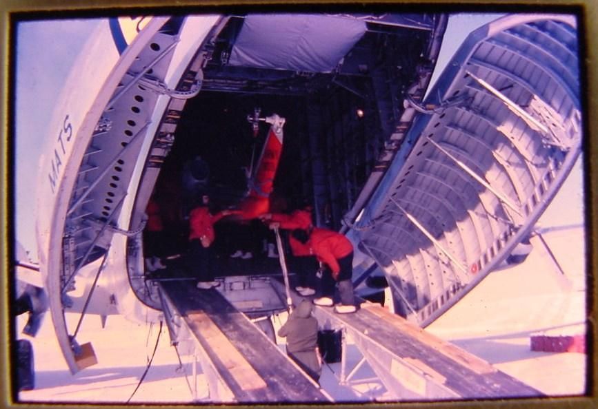 2 : 1963 US ARMY HUEY H-1 UNLOADING OPERATION DEEP FREEZE IN BELLY OF C-124.JPG