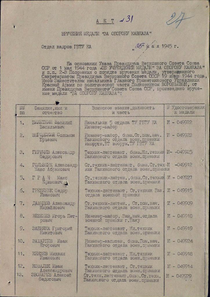 Акт № 31 от: 25.05.1945 ГБТУ КА
