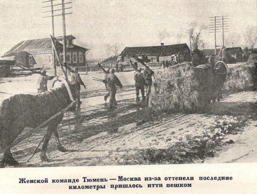 Жены командиров № ской дивизии товарищи Ирдуган Финаида, Уголькова Нина, Вагина Таисия, Дьяченко Клавдия и работница типографии политотдела той же дивизии тов. Улитина Вера, под командой младшего командира тов. Карталова Н. Ф., 22 февраля сего года блестяще завершили лыжный переход Тюмень — Москва.
