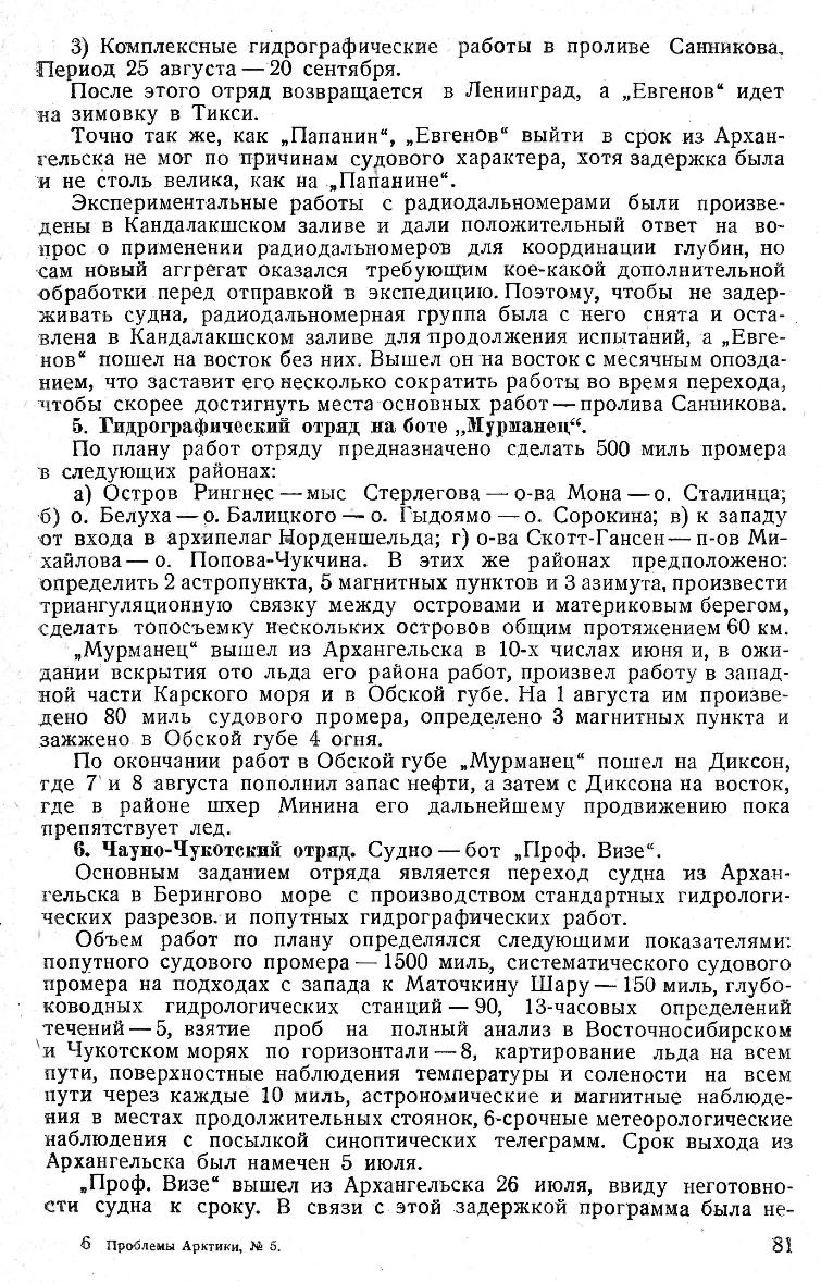 Кроме указанных отрядов гидрографическими работами в Арктике в 1937 г. занимаются также гидрографические зимовочные группы на полярных станциях.